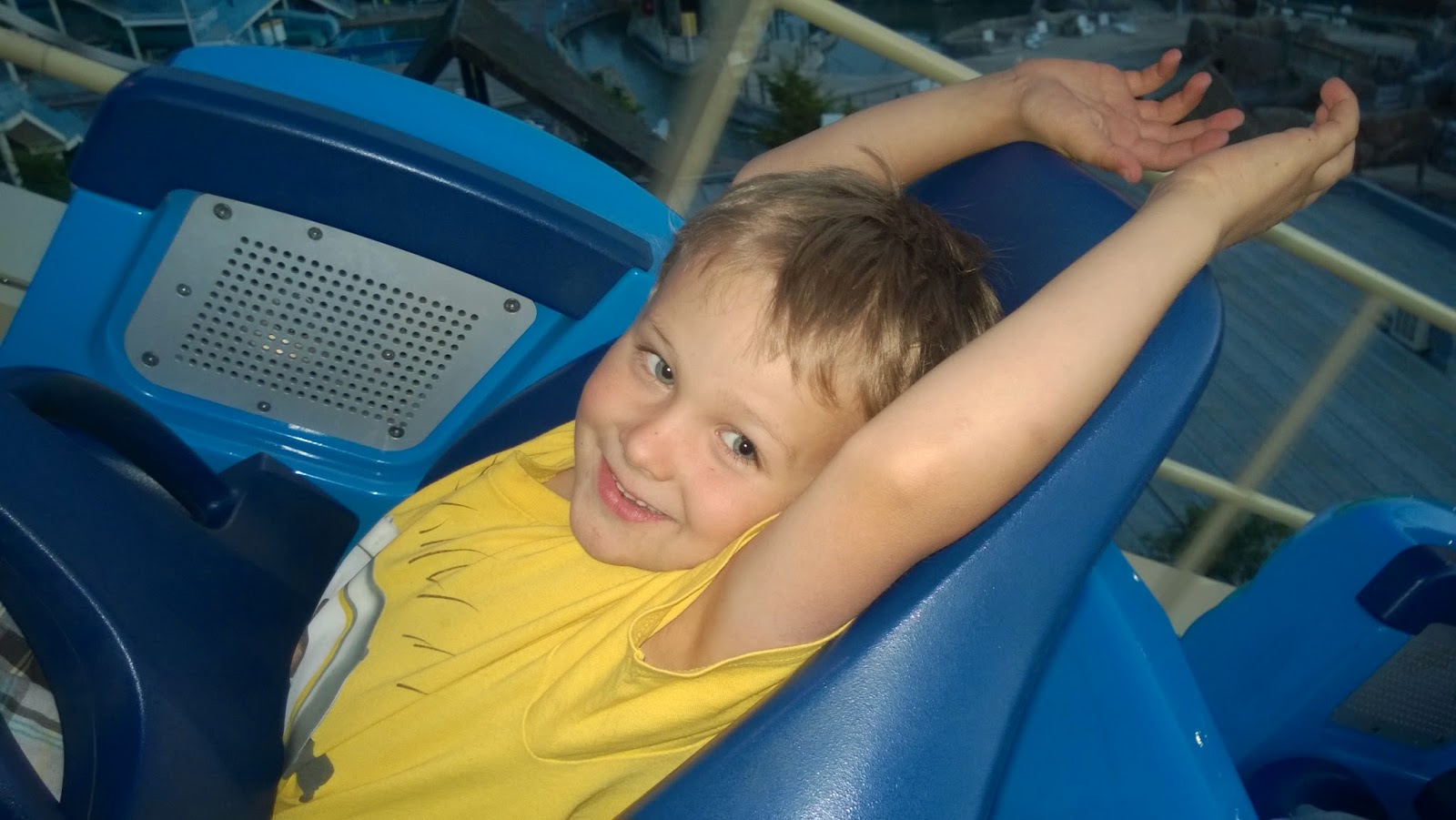 Ty LOVES rollercoasters, one more inch and he can ride the really big coasters!