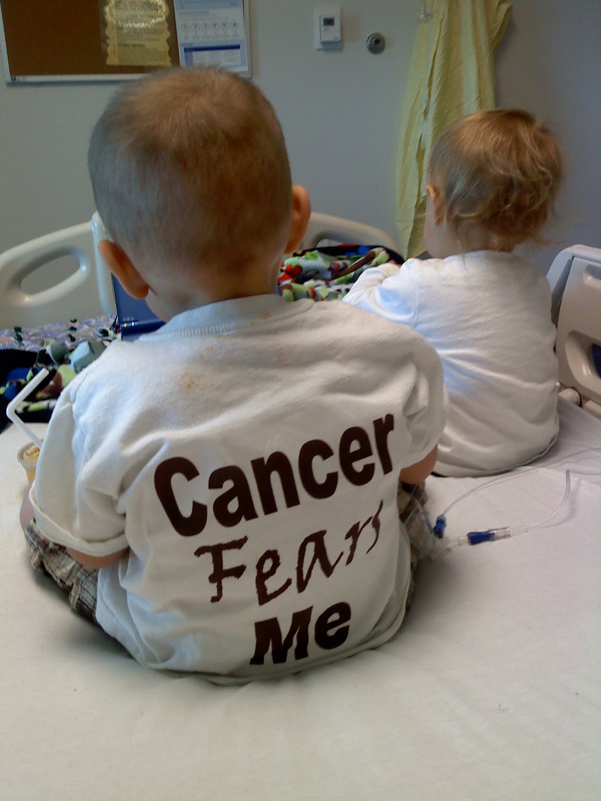 So now, Ty's ANC is 200 which is very low called neutropenic. It basically means his body can't fight germs. Which is why Rhinovirus (a cold) landed him in the hospital. That is the only thing that has come back positive on the tests they ran to see why he had a fever. They have him on ceftazadime anyway just to make sure and get whatever gave him the fever. We'll do that for a couple of days until he goes back to clinic on Tuesday for more chemo. Then we will find out if he has to stay on the IV antibiotic for more days or if they think he can be done with it. He is doing pretty good, still eating if he has had zofran, starting to get mouth sores from the doxorubicin he's on, but they aren't too bad yet. We'll probably post again on Tuesday after his appointment.